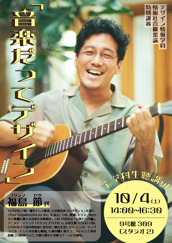 10月4日(土)14:00より「情報社会職業論」にて、学科卒業生 福島 節 氏の特別講義を開催します。