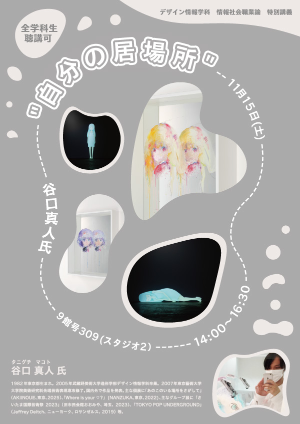 11月15日(土)14:00より「情報社会職業論」にて、学科卒業生 谷口 真人 氏の特別講義を開催します。